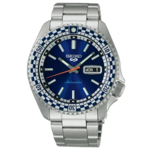 A Seiko 5 Sports Automatic SRPK65K1 férfi karóra megbízható automata szerkezettel és karakteres, sportosan elegáns megjelenéssel készült. A rozsdamentes acél tok és a hozzá illő ezüstszínű acélcsat tartós viseletet ad, a sötétkék számlap pedig határozott, mégis klasszikus összhatást teremt. A Hardlex (edzett ásványi) üveg védi a számlapot a mindennapi használat során, míg a LumiBrite világítás segít, hogy gyengébb fényben is könnyen leolvasható legyen az idő.