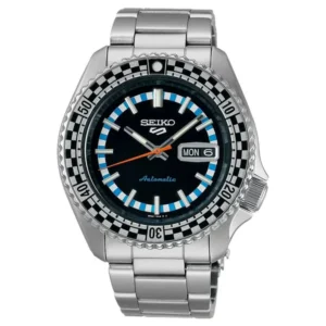 Seiko 5 Sports Automatic SRPK67K1 férfi karóra klasszikus, mégis sportosan modern megjelenéssel. A rozsdamentes acél tok és az ezüstszínű acélcsat tartós viseletet ad, a fekete számlap pedig letisztult, jól olvasható összképet teremt. A Hardlex (edzett ásványi) üveg fokozott védelmet nyújt a mindennapi használat során.