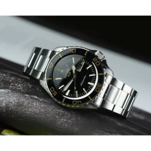 A Seiko 5 Sports SRPK99K1 egy karakteres, mégis időtálló férfi automata karóra, amely a japán megbízhatóságot modern sportos eleganciával ötvözi. A rozsdamentes acél tok és az ezüstszínű acélcsat prémium megjelenést ad, míg a fekete számlap és a fekete lünetta markáns, jól olvasható összképet teremt.