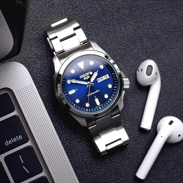 Seiko férfi automata karóra, kék számlap, 40 mm acél, WR100