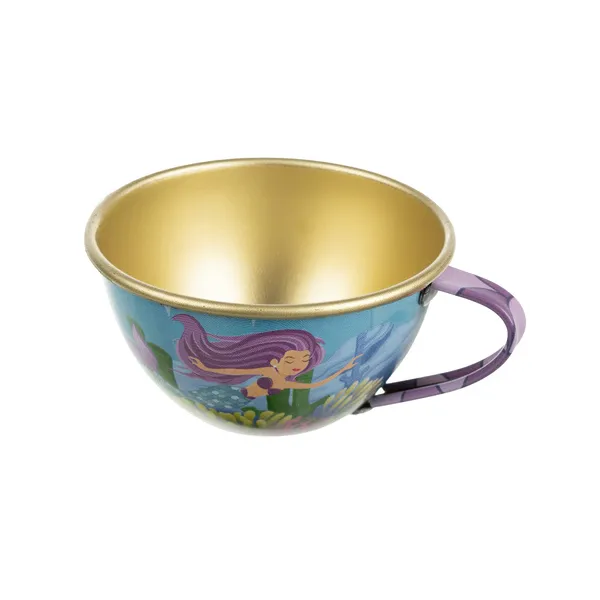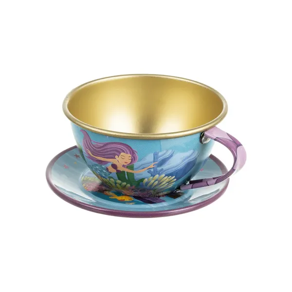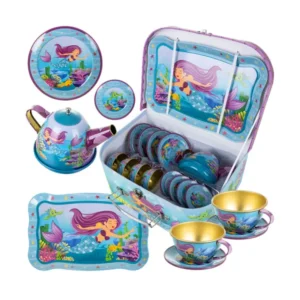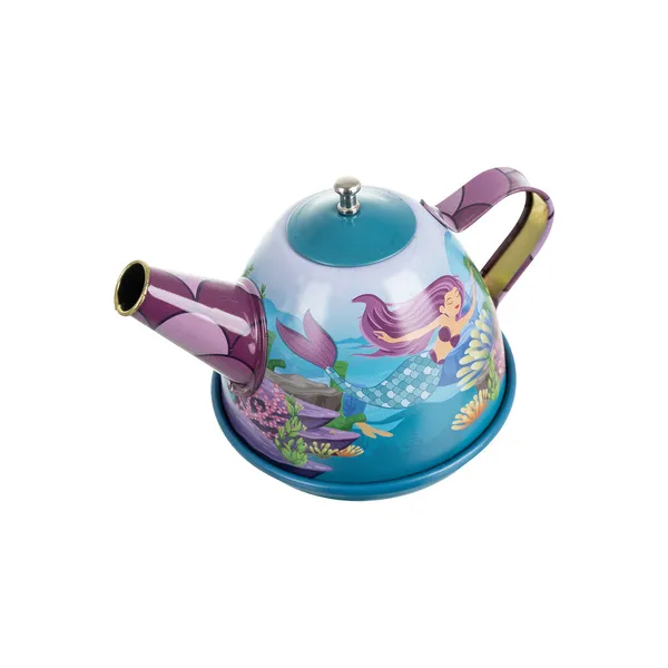 A sellő mintás gyerek teaszett egy bájos, hordozható készlet, amellyel a kicsik saját „teadélutánokat” rendezhetnek. A fém elemek könnyűek, tartósak és játék közben segítenek fejleszteni a képzelőerőt, a kommunikációt és az udvarias vendéglátás alapjait.