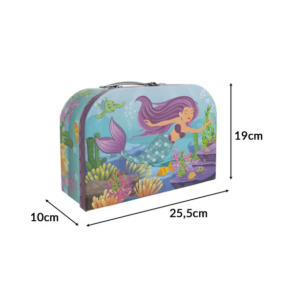 Sellő mintás fém teaszett gyerekeknek, 9 részes bőrönddel (3+)