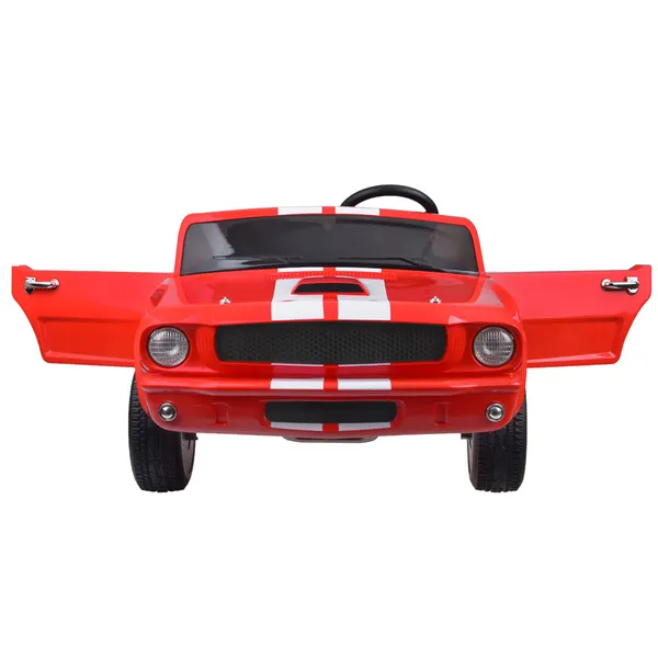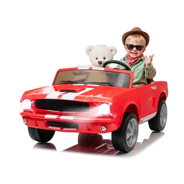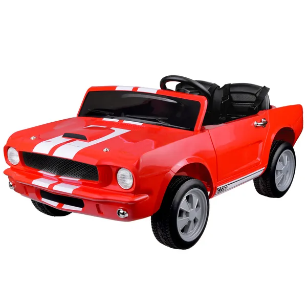 A Shelby GT350 ihlette, 12 V-os akkumulátoros, kétszemélyes gyerekautó igazi élményt nyújt a kis pilótáknak. Klasszikus, 1965-ös sportautó-formája, két fehér versenycsíkja és a nyitható ajtók már első pillantásra rabul ejtenek. A balra tolt kormány és az eco-bőr ülés biztosítja a kényelmet, míg a két darab, hárompontos biztonsági öv gondoskodik az utasok védelméről.