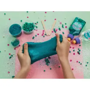 Készíts illatos, türkiz slime-ot otthon egyszerűen: a csillámmal látványosan ragyogó, rugalmas állagot érhetsz el. A zárt tárolóedény segít, hogy játék után tovább megőrizze a puhaságát, így többször is elővehető kreatív mókára.