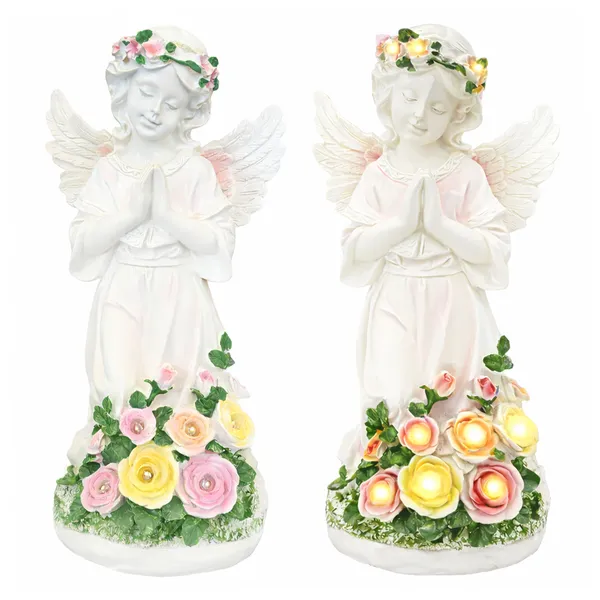 Solar LED angyal kerti dekoráció és mécsestartó szobor