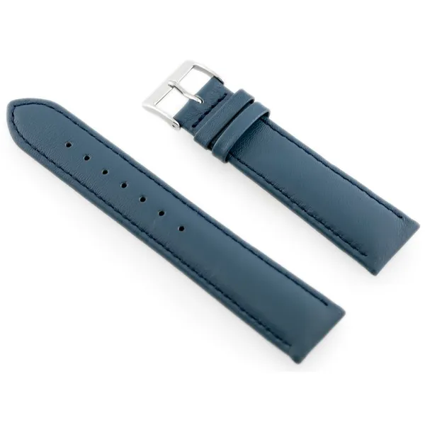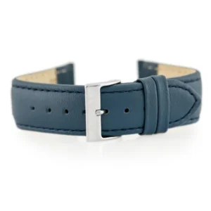 Prémium minőségű, sötétkék, 20 mm-es valódi bőr óraszíj ezüst csattal, kézzel varrott részletekkel a tartósságért; 7 lyukkal állítható, így 12,8–16,8 cm-es csuklóméretre illeszkedik.