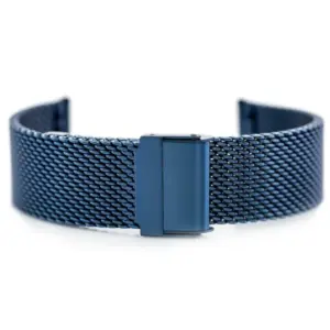 Kiváló minőségű, sötétkék színű acél milánói óraszíj elegáns, finom hálós kialakítással.