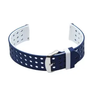 Kényelmes, tartós gumiszíj gyorskioldós megoldással, így az óra szerszám nélkül is pillanatok alatt új megjelenést kap. A sötétkék külső és a fehér belső rész modern, sportos hatást kelt, miközben a fémcsat biztos tartást ad.