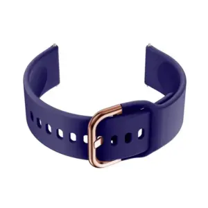 Sötétkék gumiszíj okosórához, elegáns rózsaarany színű fémcsattal. Kényelmes viseletet biztosít a mindennapokban, sportoláshoz és általános használatra is megfelelő választás.