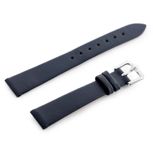 Sötétkék természetes bőr óraszíj ezüst csattal, 16 mm