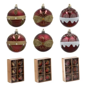 Legyen szó otthoni fáról, irodai előtéri installációról vagy kirakatdekorációról, ezek a sötétpiros gömbök időtálló eleganciát és ünnepi ragyogást kölcsönöznek minden térnek.