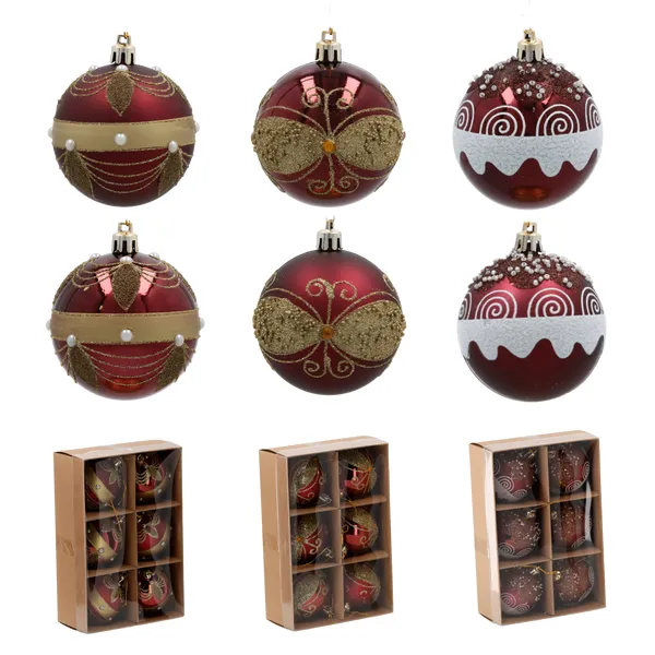 A mély sötétpiros árnyalatú, törésbiztos gömbök 7 cm-es méretükkel látványos és biztonságos díszei lesznek karácsonyfájának. A 6 darabos készlet előre fűzött akasztóval érkezik, így pillanatok alatt ünnepi hangulatot varázsolhat bárhová.