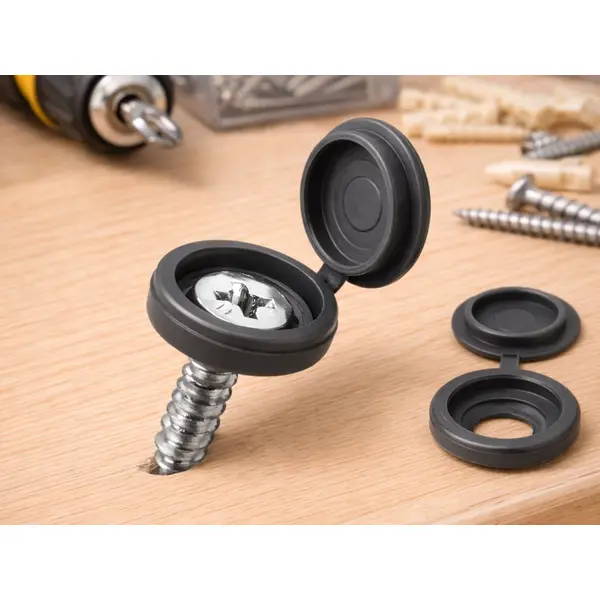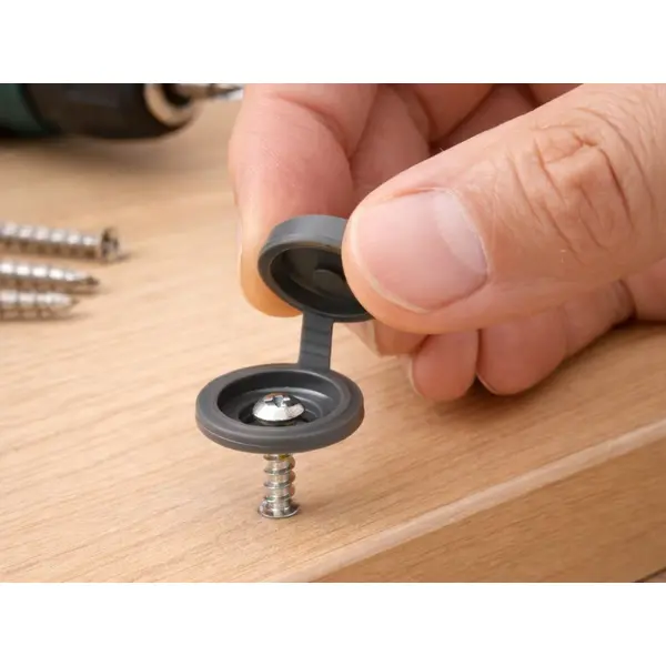 A sötétszürke csavar takaró kupakok egyszerű és igényes megoldást adnak a látható csavarfejek eltüntetésére bútorokon, munkalapokon és különféle fa alapanyagokon. A pattintható, fedeles kialakítás gyors szerelést biztosít, miközben a csavarokat védi a portól és a nedvességtől.