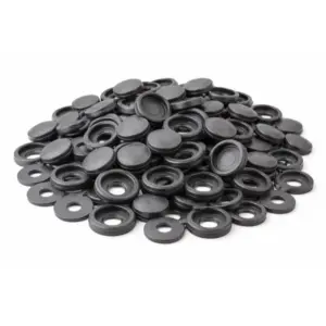 A csomag 100 db sötétszürke csavartakaró kupakot tartalmaz eredeti csomagolásban – ideális választás bútorösszeszereléshez és utólagos esztétikai takaráshoz.