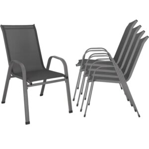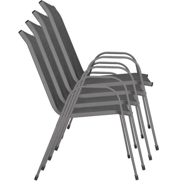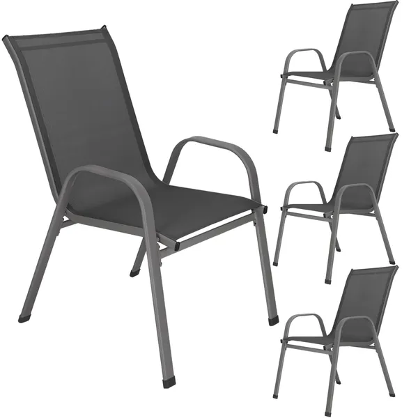 Springos 4 db kerti szék szett, acél váz, textilene, sötétszürke