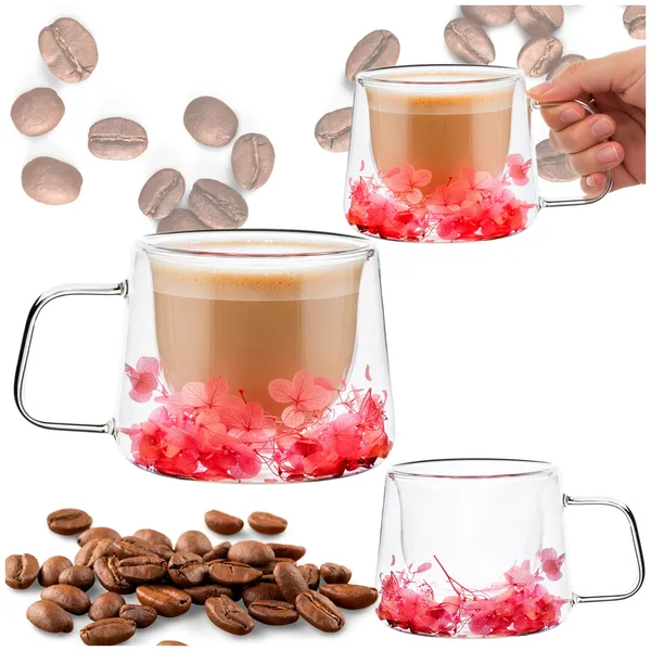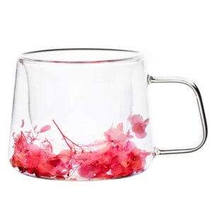 • Kialakítás: dupla falú bögre, dekoratív művirággal az üvegrétegek között
