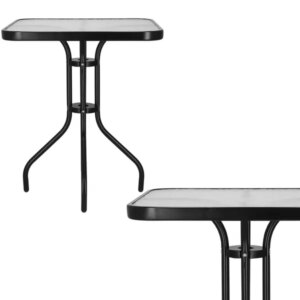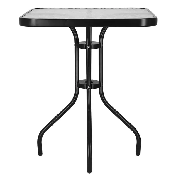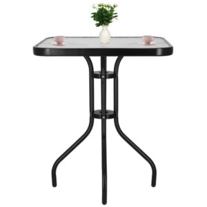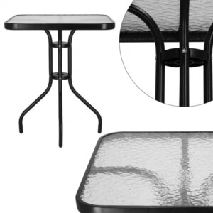 Springos kerti asztal 60×60 cm – edzett üveg lappal, fekete