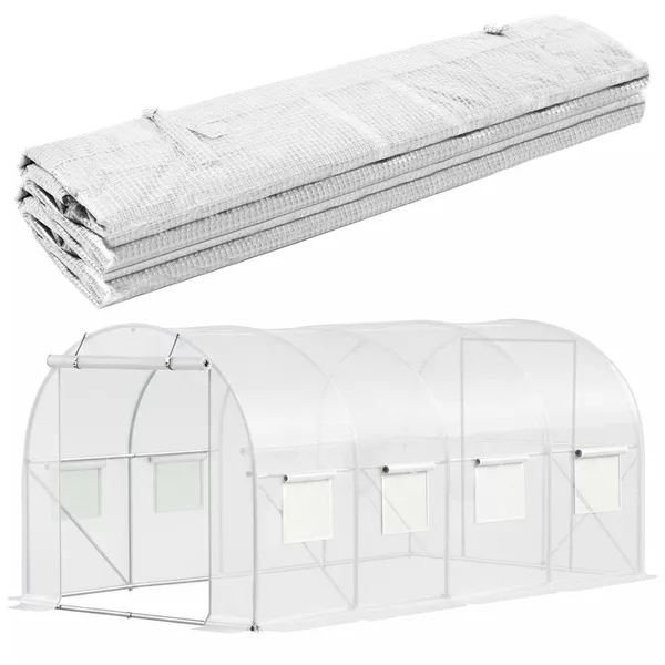 A Springos® kerti fóliasátor ideális választás, ha megbízható védelmet és stabil mikroklímát szeretne a palántáknak és a zöldségeknek. A 140 g/m²-es, UV4 védelemmel ellátott erős fólia segít a hő megtartásában, miközben a 8 szúnyoghálós ablak biztosítja a megfelelő szellőzést – így csökken a túlmelegedés és a kártevők bejutásának esélye.