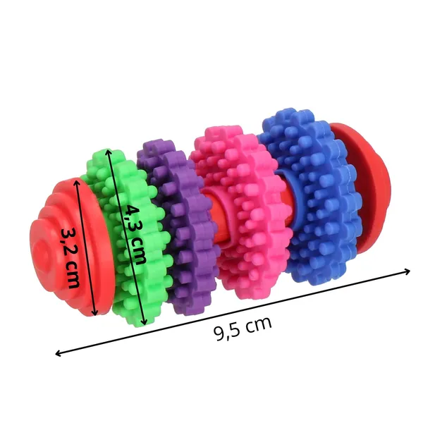 Ez a tartós, színes rágójáték masszírozza a kutya ínyét és segít a fogak tisztán tartásában. Kompakt mérete miatt otthon és sétán is könnyedén magaddal viheted, így kedvenced bármikor levezetheti természetes rágási ösztönét.