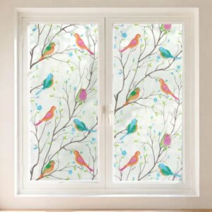 Statikus matt ablakfólia madár mintával, amely egyszerre nyújt nagyobb privát szférát és kellemes, világos beltéri hatást. A szórt, félátlátszó felület csökkenti a belátást kívülről, miközben továbbra is beengedi a természetes fényt.