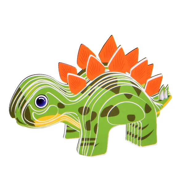 Építsd meg saját, vidám zöld Stegosaurus figurádat ezzel a 3D karton kirakóval! A színes, előre kivágott elemek egyszerűen kipattinthatók, majd az útmutatót követve ragasztó nélkül illeszthetők össze.