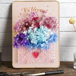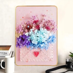 String art kreatív készlet LED fénnyel, 21×30 cm, boríték-virág minta