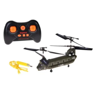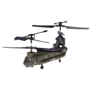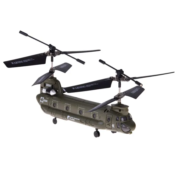 Részletgazdag, kétrotoros CH-47 Chinook stílusú RC helikopter giroszkópos stabilizálással, hogy a repülés könnyen irányítható legyen kezdőknek is. Egygombos felszállás/leszállás, lebegés funkció és LED-világítás teszi látványossá a beltéri repülést; USB-ről tölthető akkumulátorral érkezik.