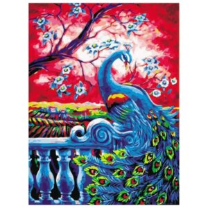 Számozott festés készlet kerettel, színes páva, 30×40 cm