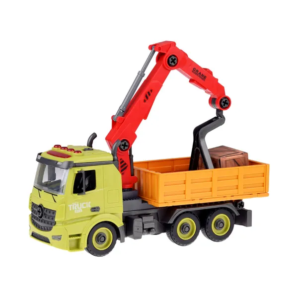 Szétszerelhető játék darus teherautó hanggal, súrlódásos hajtással