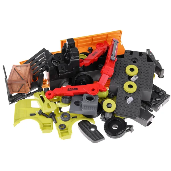 A különlegessége, hogy a daru a mellékelt, cserélhető fejekkel ellátott csavarhúzóval elemeire szedhető, majd újra összeszerelhető. Ez izgalmas kihívás, amely játék közben fejleszti a kézügyességet és a türelmet is.