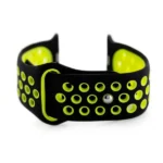Puha, tartós szilikonból készült csuklószíj 42/44 mm-es Apple Watch modellekhez, amely sportos fekete–zöld dizájnnal és gyors csatlakozóval teszi egyszerűvé az órája személyre szabását. Légáteresztő perforációja és állítható hossza gondoskodik a kényelmes viseletről edzés közben is.