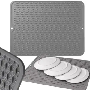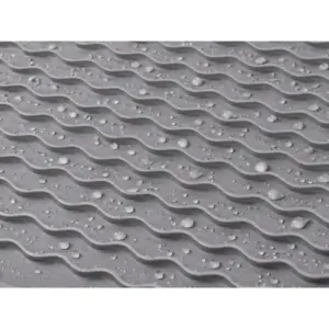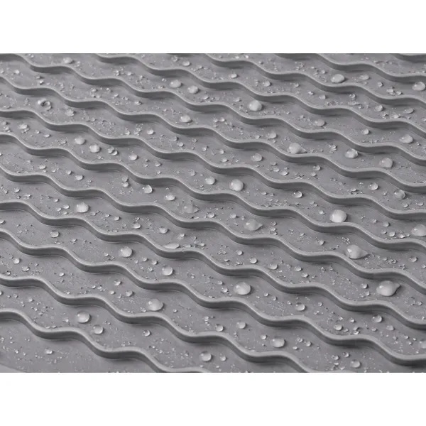 Praktikus szilikon edényszárító alátét a konyhapultra, amely a bordázott, hullámos felületnek köszönhetően gyorsan elvezeti a vizet, így az edények hamarabb száradnak. Megóvja a munkalapot a nedvességtől, a vízfoltoktól és a karcolásoktól, miközben rendezettebbé teszi a mosogató környékét.