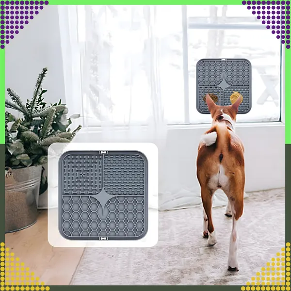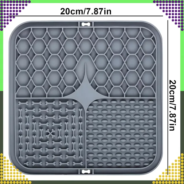 A 20×20 cm-es szilikon nyalogató etetőmat ideális kutyák és macskák számára, akik hajlamosak farkasétvággyal enni vagy könnyen stresszelnek. A puha, élelmiszer-biztos felület barázdái közé kenhető a nedves eledel, jutalomkrém vagy joghurt, amelyet kedvenced nyalogatva lassan fogyaszt el, így természetes módon nyugszik meg és hosszabb ideig marad egy helyben.