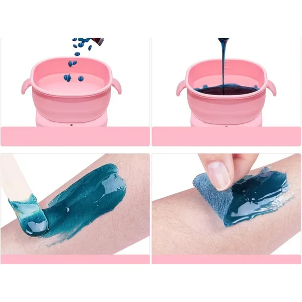 A szilikon, összehajtható viaszmelegítő ideális otthoni és utazáshoz: gyorsan felmelegíti a viaszt, könnyen tisztítható, és kis helyen is elfér. A mellékelt viasz és spatulák révén azonnal elkezdheti a gyantázást.