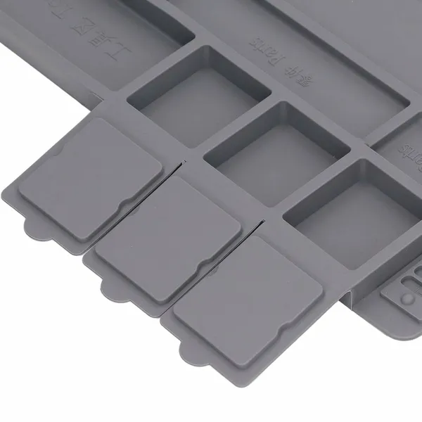 Hőálló szilikon alátét forrasztáshoz és elektronikai javításhoz, amely megóvja a munkapadot és segít rendet tartani. A mágneses zónák, zárható rekeszek és a mérőskála gyorsabbá teszik az apró alkatrészek kezelését és a pontos munkát.