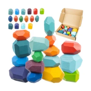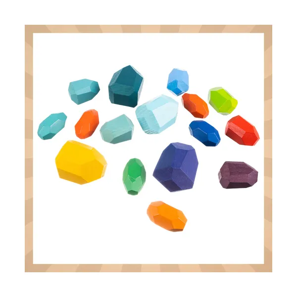A 16 darabos, színes fa építőkocka készlet remek választás kreatív építéshez és játékos tanuláshoz. A különböző formák és színek segítségével a gyerekek tornyokat, mintákat és figurákat alkothatnak, miközben fejlődik a kézügyességük és a gondolkodásuk.