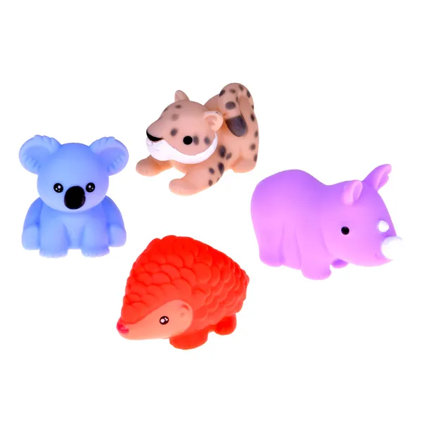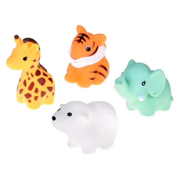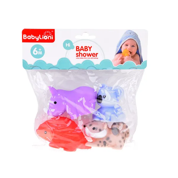 Színes gumifigura készlet fürdőjátékhoz, 4 db, 6 hó+, vízsugárzó