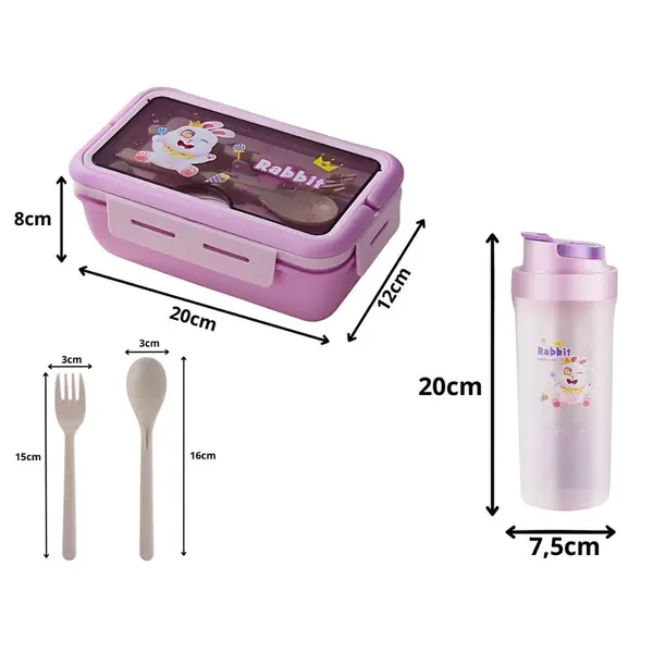 • Műszaki adatok: uzsonnás doboz 20 × 12 × 8 cm, 1100 ml; kulacs 20 × 7,5 cm, 500 ml