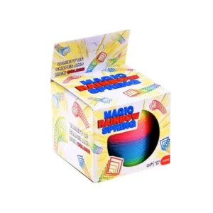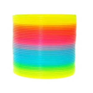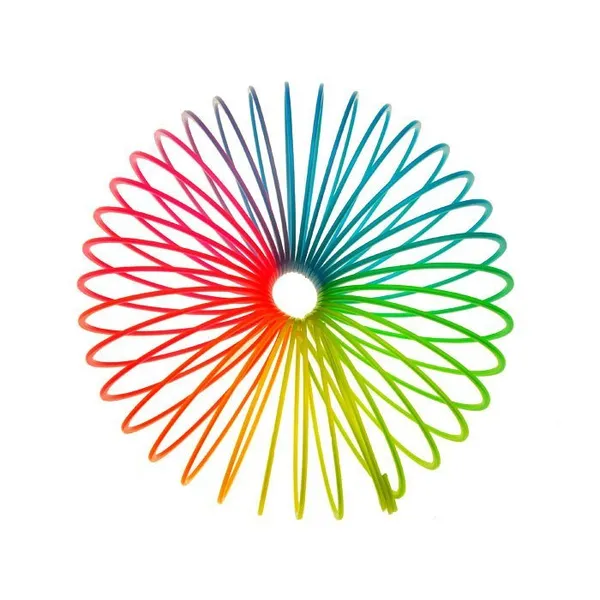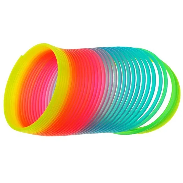Szivárványos gyöngyház felületű műanyag rugónk bármely korosztályt levesz a lábáról: a 7,5 cm átmérőjű, 6,5 cm magas spirálnak elég egyetlen lépcsőfok, és máris élettel teli, hullámzó mozgással kúszik lefelé. A gyerekeknek látványos fizikai kísérlet, felnőtteknek stresszoldó asztali kütyü.