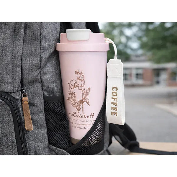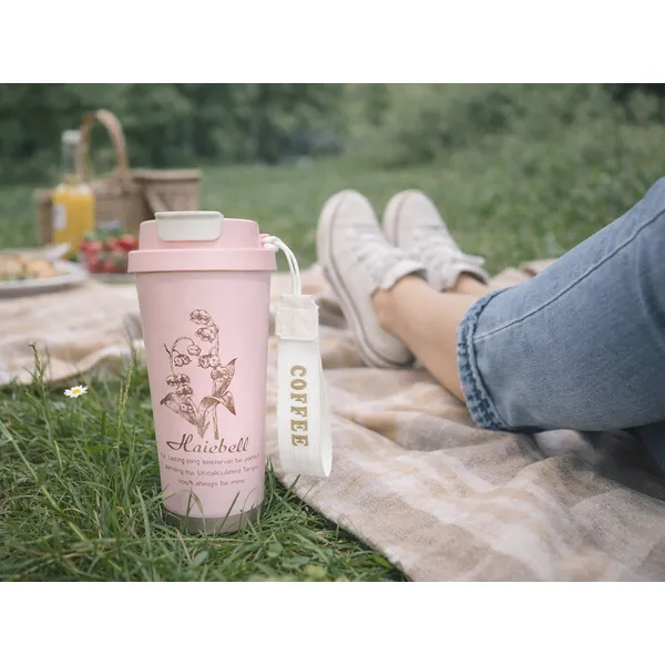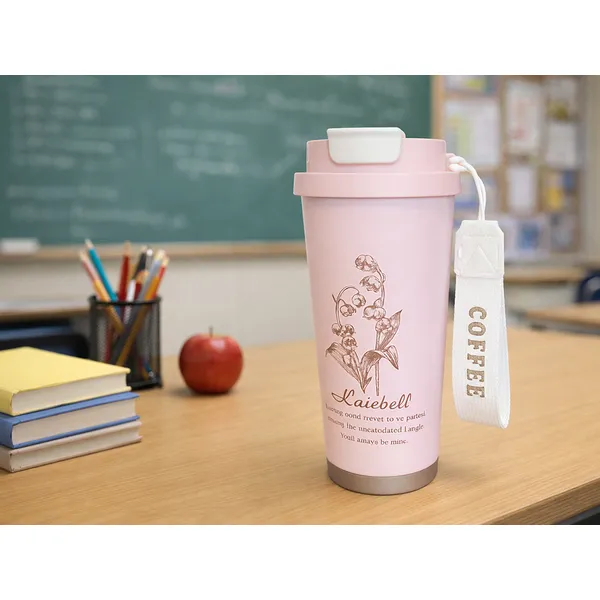 Szívószálas termoszbögre 530 ml, rozsdamentes acél fogantyúval, rózsaszín