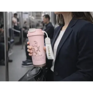 A szoros illeszkedésű fedél és a szívószál kényelmes ivást tesz lehetővé döntés nélkül, így csökkenti a kifröccsenés esélyét. A csúszásgátló talp stabilan tartja a bögrét, a fogantyú pedig biztos fogást ad a mindennapokban.