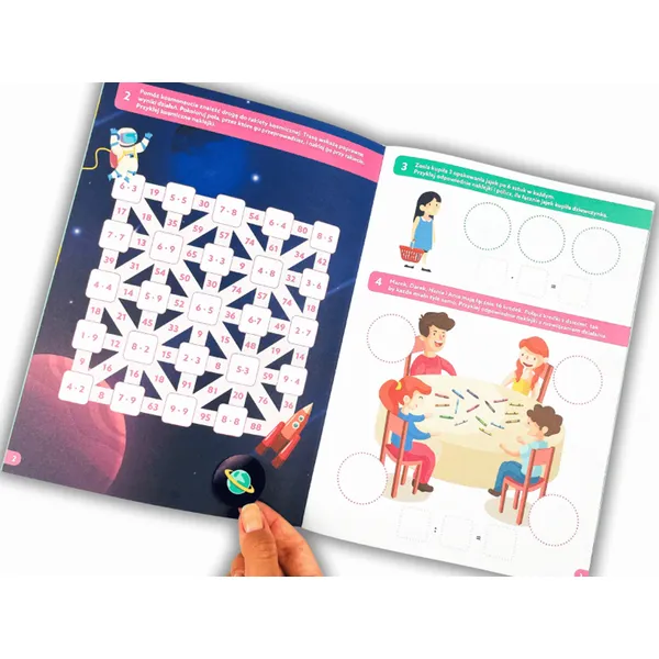 A tartalom gondosan felépített gyakorlatai megerősítik a számolási műveleteket: egyszerű példák és szöveges feladatok is helyet kapnak, amelyek fejlesztik a logikus gondolkodást. A fokozatos nehezítésnek köszönhetően könnyen a gyermek aktuális szintjéhez igazítható, és biztos támpontot ad az alap számolás világában.