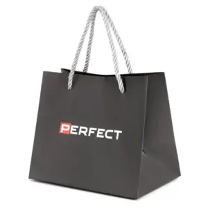 Elegáns, szürke színű ajándéktáska, amely tartós, kemény papírból készült. Praktikus választás kisebb ajándékok esztétikus átadásához, miközben a stabil kialakítás segít megóvni a csomag tartalmát.