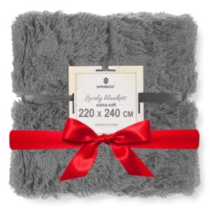 Szürke bolyhos pléd 220×240 cm, poliészter, kétoldalas