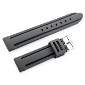 Kényelmes, szürke gumióraszíj mindennapi viselethez, amely tartós kialakításával és ezüstszínű csatjával megbízható rögzítést ad. A 24 mm-es csatlakozásnak köszönhetően ideális választás, ha praktikus és letisztult csereszíjat keres órájához.