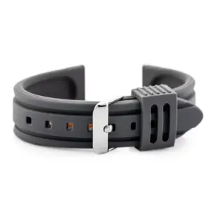 Szürke gumírozott óraszíj, amely kényelmes viseletet és praktikus, mindennapi használatot kínál.