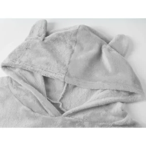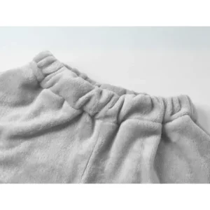 Élvezd a hideg esték nyugalmát ebben a pihe-puha, kapucnis, két részes női pizsamában! A szürke színű, L méretű szett hosszú ujjú felsőből és rövidnadrágból áll, melyek 100% pamut plüss anyagból készültek a maximális melegség és légáteresztés érdekében.