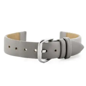 Szürke színű, természetes bőrből készült óraszíj, ezüstszínű fém csattal. Klasszikus megjelenésének köszönhetően kényelmes és elegáns választás a mindennapi viselethez.