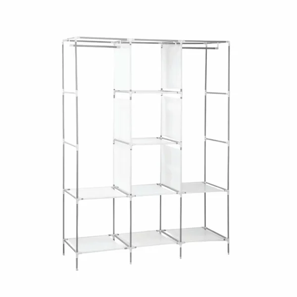Könnyű, mégis stabil tároló, amellyel gyorsan rendet tehetsz a hálóban, gardróbban vagy gyerekszobában. A zárt, szürke textil huzat alul is védi a ruhákat a portól, a polcok, akasztórészek és oldalzsebek pedig kényelmesen rendszerezik a mindennapi darabokat.