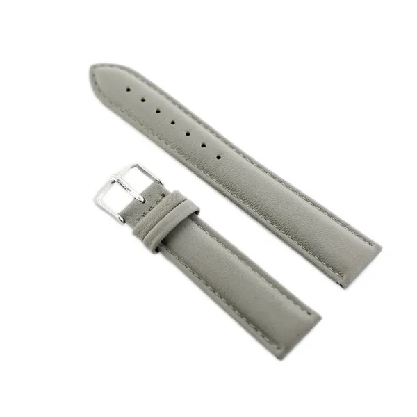 Természetes, valódi bőrből készült óraszíj elegáns szürke színben, szürke varrással. Tartós, ezüstszínű fém csattal a biztonságos rögzítésért.
